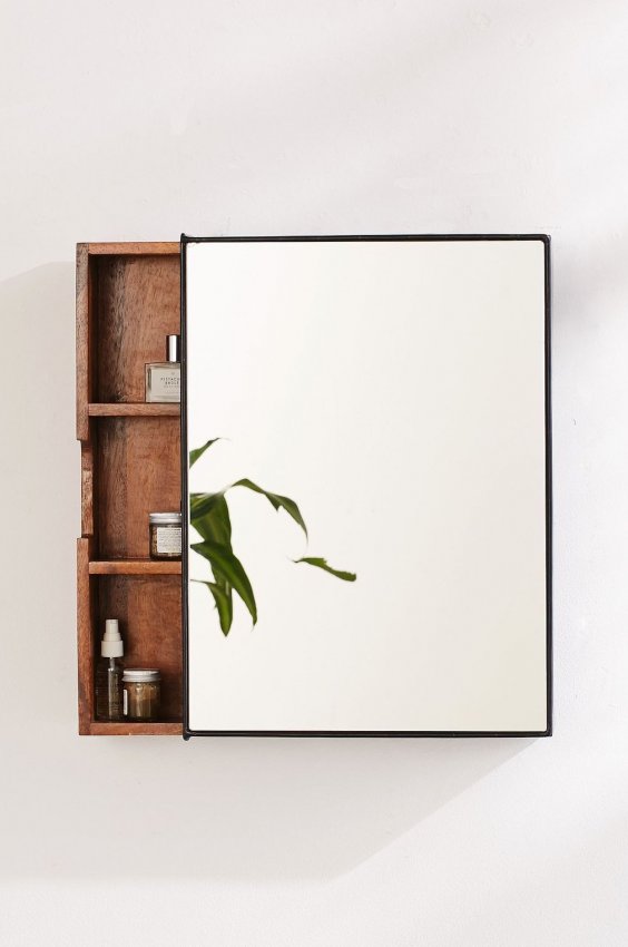 За зеркалом можно спрятать вместительный шкафчик для косметики