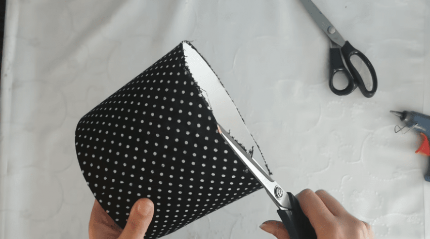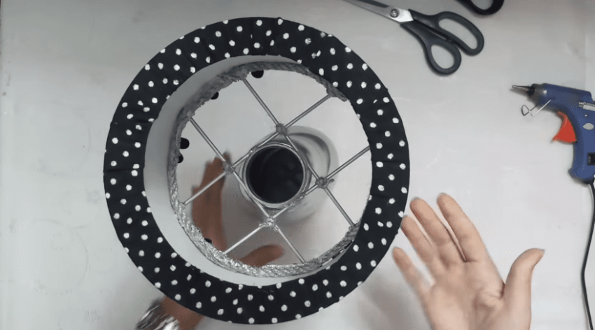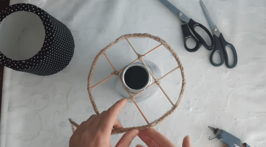 Устанавливаем абажур на основу и закрепляем его. Отверстие оставляем открытым.