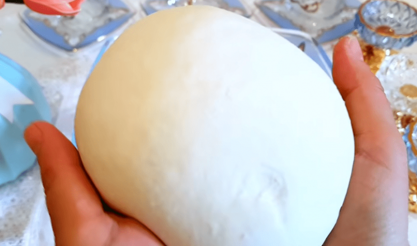 Замешиваем тесто. Оно получается мягким, эластичным, не липнет к рукам. Готовое тесто накрываем пленкой и даем 40 минут отдохнуть.