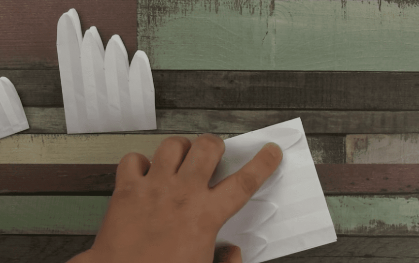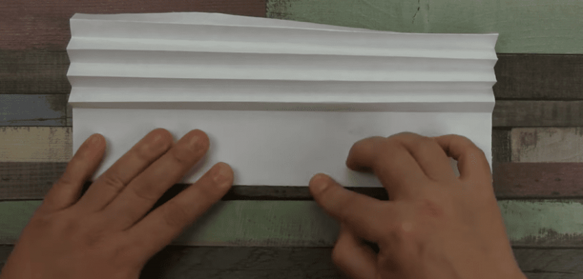 В результате половинка листа поделена на 8 равных полос. Теперь просто собираем их по принципу гармошки. Затем проделываем то же самое со второй половиной листа. На выходе получаем 12 заготовок, по 4 каждого размера.