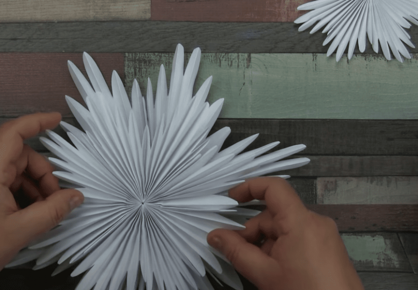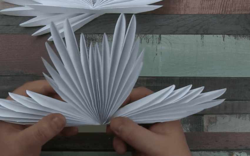 Теперь все веерки одного размера нужно аккуратно склеить между собой и в местах сгиба.