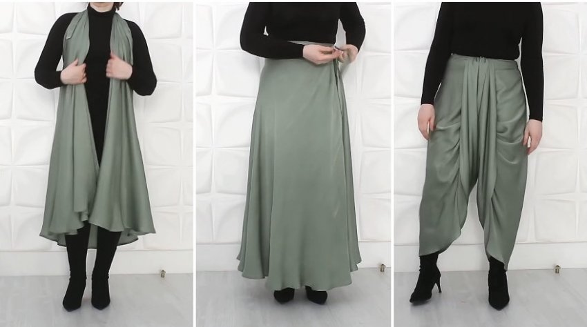 Только представьте, в вашем гардеробе появилось сразу несколько стильных обновок: элегантная юбка, эффектные брюки, легкий кардиган без рукавов, несколько платьев и сарафанов. И все это благодаря приобретению, а точнее пошиву, всего одной вещи с элементарным кроем. Думаете, такого не бывает? А вот и ошибаетесь! Убедитесь сами: все предельно просто и быстро. С работой справится даже начинающая швея, потратив не более часа своего драгоценного времени, и это с учетом раскроя полотна и снятия мерок. Итак, пошить предлагается длинную юбку-трансформер, которую благодаря моделированию легко превратить в массу интересных самодостаточных вещей.