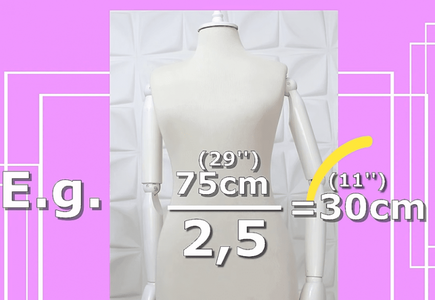 Замеряем талию и делаем расчет, необходимый для того, чтобы определить местонахождение талии в изделии. Для этого обхват талии (ОТ) делим на 2,5. Полученный результат в см является той величиной, которую необходимо отложить от угла вниз.