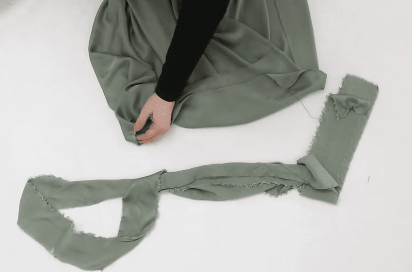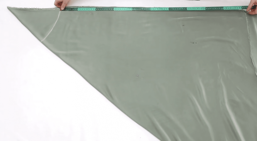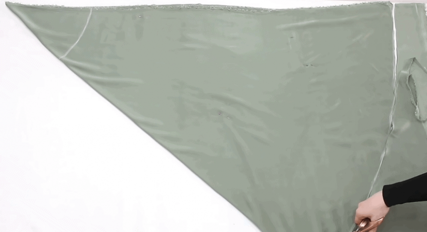 Обрезаем лишнюю ткань снизу и в области талии, а затем разворачиваем полотнище.