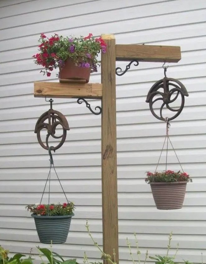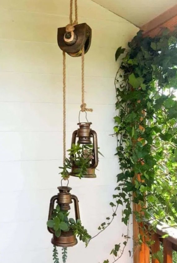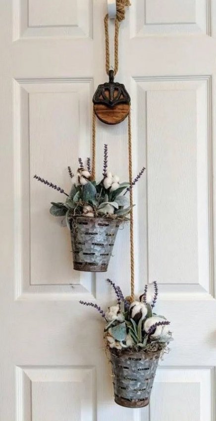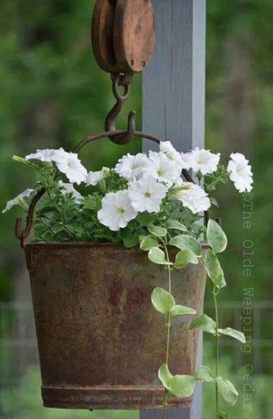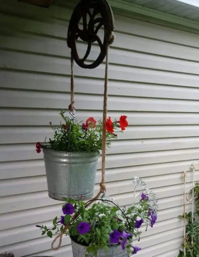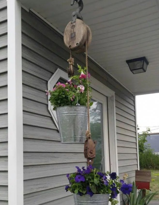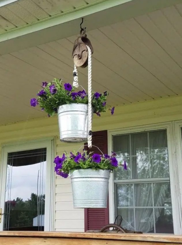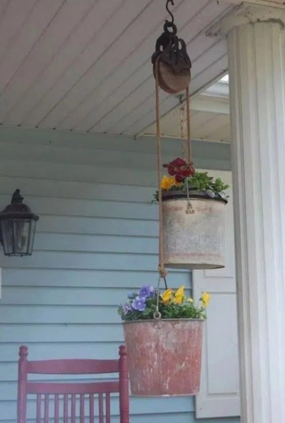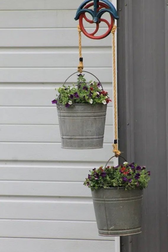 Не поспоришь с тем, что цветы — основные украшения сада, главное — красиво и оригинально их разместить. Сад — место для воплощения в жизнь креативных идей. Отличной идеей станет размещение цветов в подвесных кашпо, при этом в качестве кашпо можно использовать обычные ведерки, выглядит это очень стильно и оригинально. Попробуйте воплотить в жизнь эту простую и интересную идеи и результат, без сомнения, порадует вас.