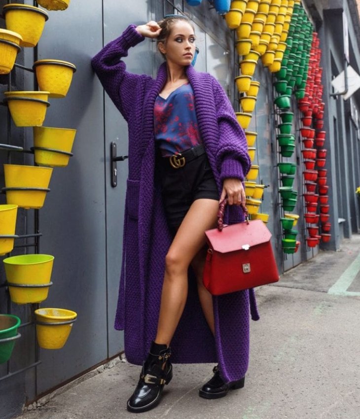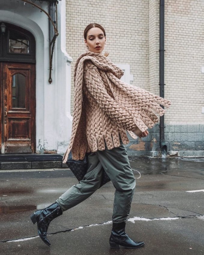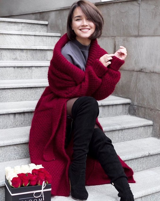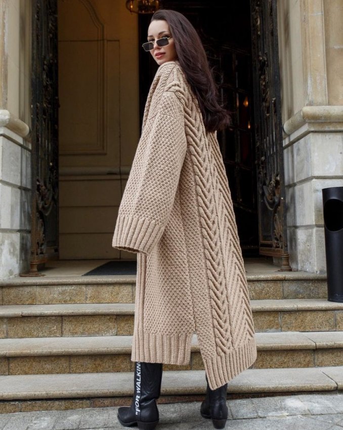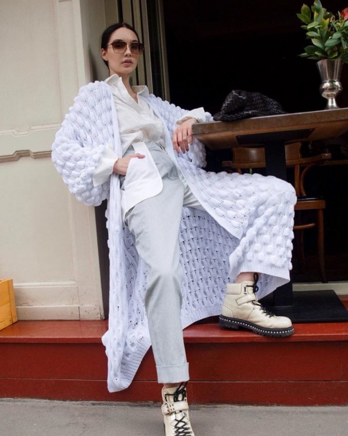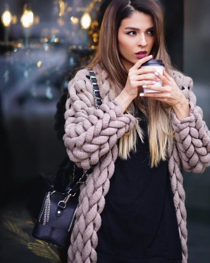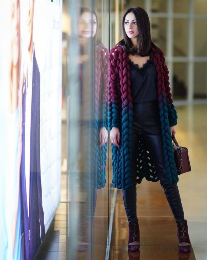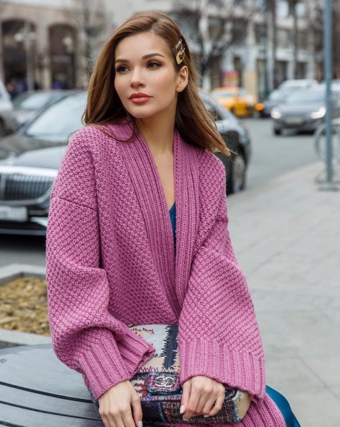 Нет никаких ограничений, связанных с узором и расцветкой: это может быть однотонный кардиган, стильная вещица с градиентными переходами или смелая анималистичная расцветка. Это могут быть классические косы, оригинальные геометрические узоры или всеми любимые объемные жгуты Лало.