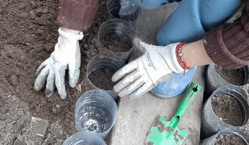 Наполняем заготовки землей, хорошо уплотняя, но не до самого верха. Так после посева семян их достаточно будет просто засыпать землей.