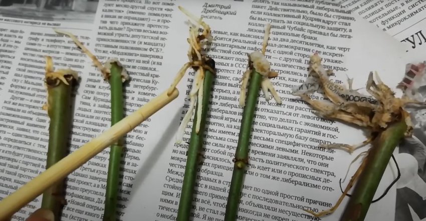 Для успешного прорастания черенки следует положить в темное и прохладное место. Через 1,5-2 недели черенки необходимо проверить. Если несколько черенков потемнеет, просто выкиньте их, оставив только те, у которых уже проклюнулись корешки.