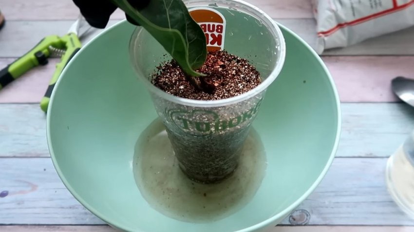 На дно стакана объемом 0,5 литра насыпьте мелкий керамзит. Наполните стакан на 2/3 вермикулитом. Для того чтобы черенок быстрее укоренился, субстрат следует обильно полить0,5 литрами воды с добавлением одной капли концентрированного натурального удобрения HB-101.