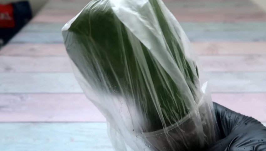 Поместите емкость с черенком в целлофановый пакет, чтобы создать парниковый эффект.