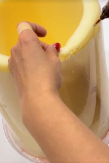 Удалите дно ведерка, для этого удобнее всего использовать паяльник. Подравняйте край с помощью канцелярского ножа.