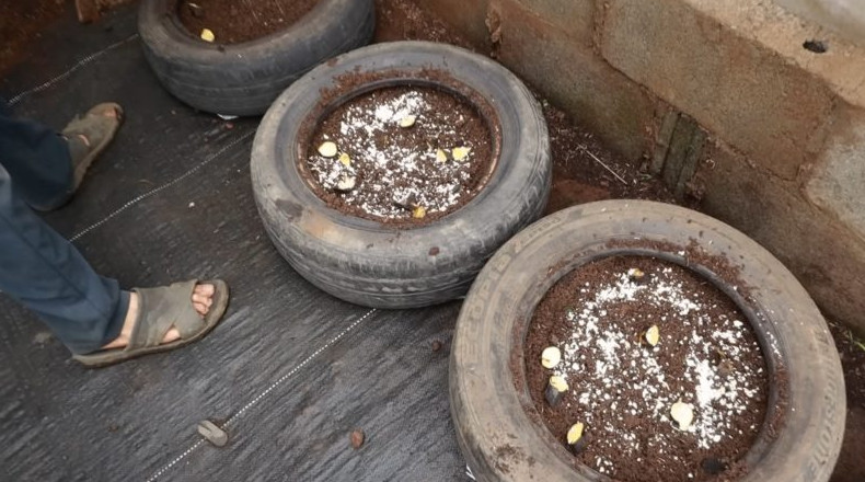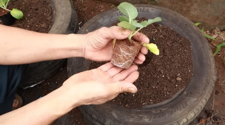 Получить богатый урожай большой и сочной белокочанной капусты можно, даже не имея огорода. Капуста прекрасно может расти и в небольших емкостях, для изготовления которых удобнее всего использовать шины. Посадив рассаду в шины, уже через три месяца можно будет собирать первый урожай, который точно впечатлит своими масштабами. Из мешка для строительных материалов вырежьте круглые заготовки, диаметр которых соответствует внешнему диаметру шины. Закрепите круглые заготовки на шине с помощью мебельного степлера, это будет основание будущего контейнера. Сделайте в основании большое количество отверстий. Для этого удобнее всего использовать паяльник. Читайте также - Для того, чтобы поднять настроение и зарядиться положительной энергией на целый день рекомендуется смотреть красивые картинки, поделки и многое другое. Зимние виды спорта посмотреть. Наполните подготовленные контейнеры плодородной почвой, состоящей из 70% земли, 20% куриного навоза и 10% рисовой шелухи. В каждый контейнер положите по одному переспелому банану, нарезанному на кусочки. Банан выступит в качестве натурального органического удобрения с большим содержание калия, который будет стимулировать активный рост капусты. Помимо бананов в каждый контейнер необходимо положить небольшое количество подсушенной яичной скорлупы. Сверху на удобрения насыпьте немного основного субстрата. В центр каждого контейнера посадите подросшую рассаду капусты. Накройте рассаду соломой и обильно полейте чистой водой. Регулярно поливайте посадки, и очень скоро рассада начнет активно расти. В этом ей помогут натуральные удобрения, внесенные в почву. Примерно через три месяца урожай капусты полностью созреет, и кочаны можно будет срезать.