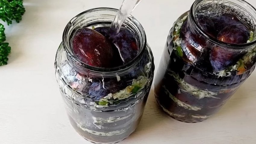 Закройте заготовки крышкой и хорошо потрясите, чтобы уксус смешался с водой. Оставьте сливы мариноваться минимум на неделю. Заготовку можно хранить год в прохладном месте.