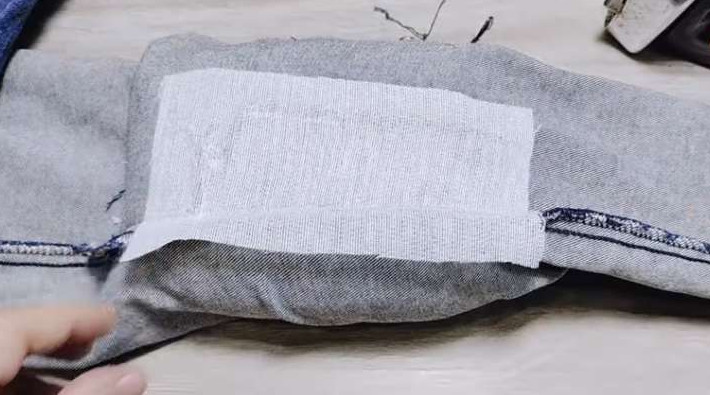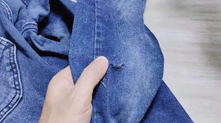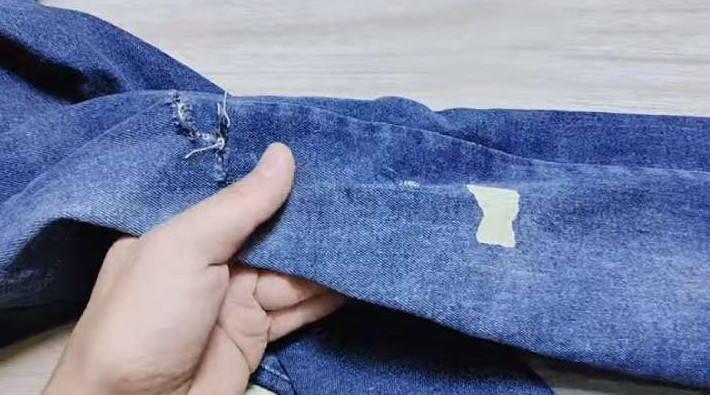 Стежок делайте максимально часто, а края дырки подворачивайте внутрь, на внутреннюю сторону джинсов.