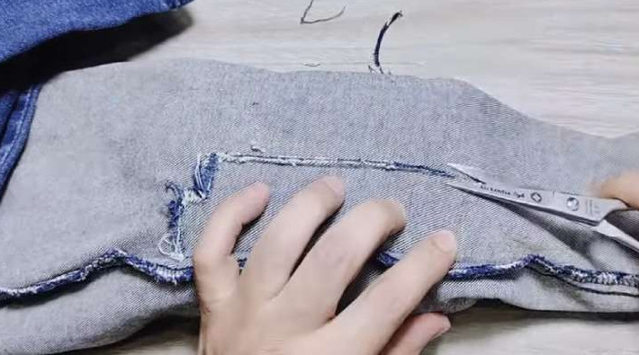 Выверните джинсы на обратную сторону, порванные края подрежьте ножницами. Разгладьте утюгом шов.