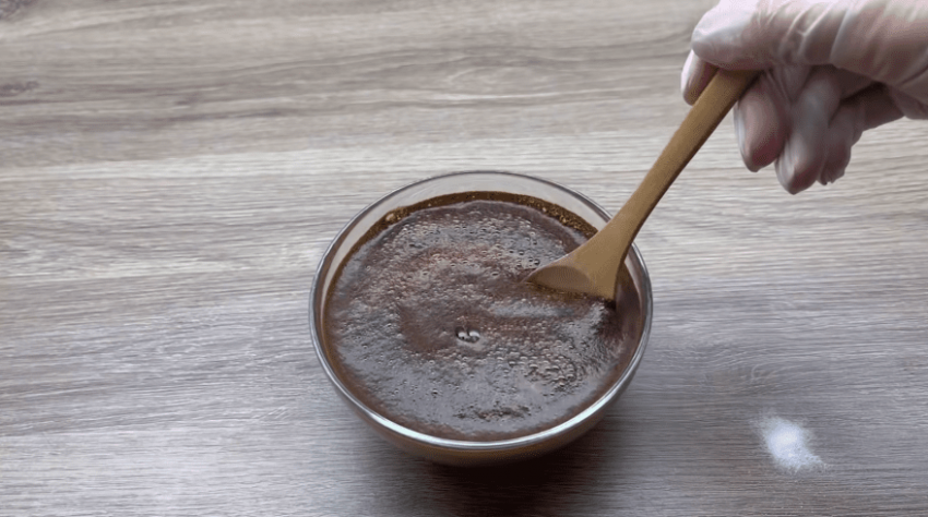 Заливаем кофейную составляющую в соду вместе с гущей. Тщательно все перемешиваем. Состав готов к использованию. Нет необходимости готовить средство перед каждой процедурой. Достаточно отправить излишки на хранение в холодильник.