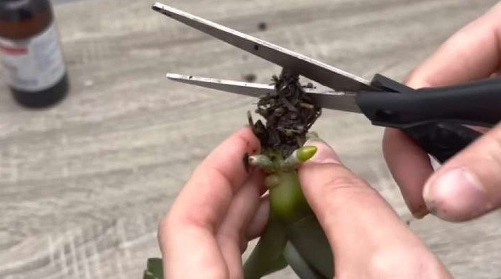 Для начала осмотрите корни. Всё гнилое полностью удалите острыми обеззараженными ножницами.