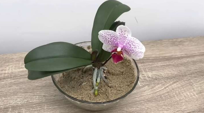 На следующий день высадите подсохшую, обеззараженную орхидею в слегка влажный песок. Время от времени увлажняйте его из пульверизатора. Орхидея должна находиться в хорошо освещённом месте без сквозняков.