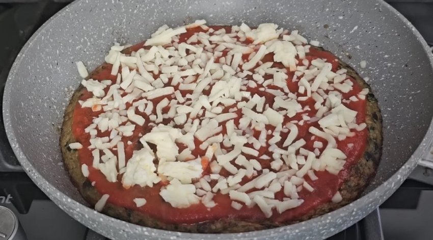 С наступлением лета хочется готовить как можно больше блюд из овощей. Разнообразить ежедневное меню поможет вкусная лепешка из баклажанов, которая готовится без муки. Очень простое в приготовлении блюдо получается вкусным и сытным. Такая лепешка может стать полноценным ужином или дополнить любое мясное блюдо. Натрите один баклажан на крупной терке. Переложите в сито, посолите и хорошо перемешайте. Оставьте на 10 минут, за это время лишняя вода стечет. Хорошо отожмите натертый баклажан и соедините его с яйцами, взбитыми с солью и перцем. Добавьте зелень по вкусу и хорошо перемешайте. Читайте также - Для того, чтобы поднять настроение и зарядиться положительной энергией на целый день рекомендуется смотреть красивые картинки, поделки, про интерьер и дачный дизайн в фотографиях, про животных, насекомых, рыб, разнообразие флоры, фауны и многое другое - Отделка потолка на балконе варианты посмотреть. Выложите подготовленную массу на разогретую сковороду и разровняйте. Готовьте на медленном огне под закрытой крышкой 10 минут. Переверните лепешку, смажьте его томатным пюре и посыпьте тертым сыром. При желании можно добавить немного тимьяна. Накройте сковороду крышкой и готовьте еще 5 минут.