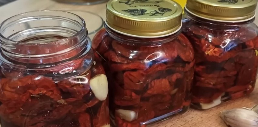 Вяленые томаты — прекрасное дополнение ко многим блюдам. С их помощью можно превратить обычный бутерброд, домашнюю пиццу или привычный омлет в ресторанное блюдо, которое по достоинству оценит вся семья. Первым шагом необходимо выбрать правильные помидоры. Для вяленья подходят плотные мясистые сорта некрупного размера. Перед сушкой помидоры необходимо тщательно промыть и разрезать пополам. Читайте также - Для того, чтобы поднять настроение и зарядиться положительной энергией на целый день рекомендуется смотреть красивые картинки, поделки, про интерьер и дачный дизайн в фотографиях, про животных, насекомых, рыб, разнообразие флоры, фауны и многое другое - Мусульманские платья для женщин посмотреть. Раскрыть вкус томатов поможет сушеный базилик, розмарин, сушеный чеснок и ароматная сванская соль. Для сушки можно использовать электросушилку, либо обычную духовку. Оптимальная температура для сушки — 50 градусов. Если сушка будет осуществляться в духовке, то необходимо подставить под дверцу ложку, это позволит лишней влаге выходить из духового шкафа. Понять, что томаты хорошо высушены можно только после их полного остывания. В центре плода не должна оставаться влага. Если же томат слегка влажный, его необходимо посушить еще некоторое время. При этом важно не пересушить томаты: они должны оставаться эластичными и гибкими. Для хранения рекомендуется использовать небольшие банки объемом 0,5 л — 0, 7 л. Выложите вяленые томаты в банки, добавляя пластины чеснока между слоями. Это сделает вкус закуски еще более выразительным. Для заливки томатов смешайте 4 части растительного масла и 1 часть оливкового масла. Нагрейте масло на водяной бане до температуры 100 градусов, важно не перегреть масло. Залейте томаты горячим маслом и плотно закрутите крышки банок. Уже через неделю первую баночку вяленых томатов можно будет подавать к столу.