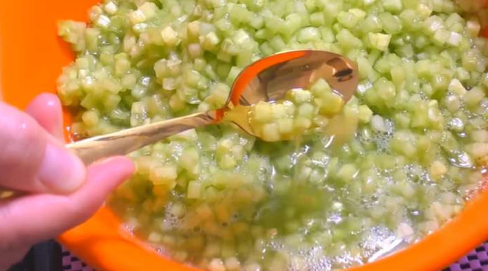 Огурцы слегка присолите и оставьте, чтобы они пустили сок. Затем откиньте их на сито на 15-20 минут, чтобы стекла лишняя жидкость.