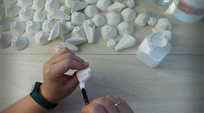 В каждой детали тонким сверлом просверлить отверстие. Затем покрыть все поделки грунтом.