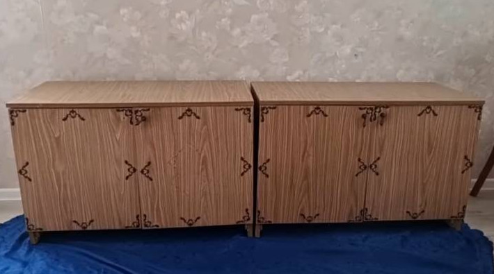 Сами тумбы поставили на новые высокие деревянные ножки. Внутрь установили полки от старых антресолей.