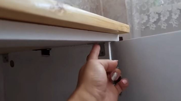 Верхние антресоли сняли, а с тумб открутили ручки и убрали старый декор.