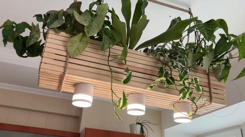 В качестве основы для создания фито люстры понадобится балконный ящик для растений.