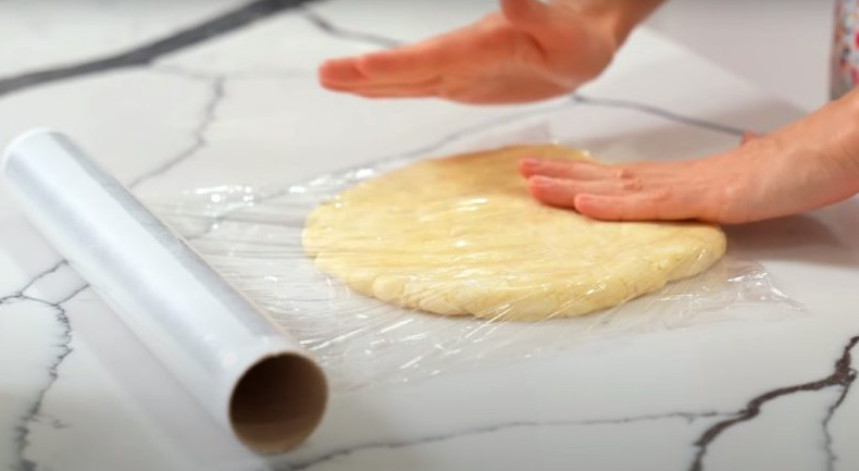 Заверните тесто в пищевую пленку и поместите в морозильную камеру на 30 минут.