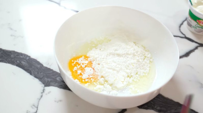 Для приготовления сметанной заливки соедините кукурузный крахмал с яйцом, сахаром, ванильным сахаром и оставшейся сметаной.