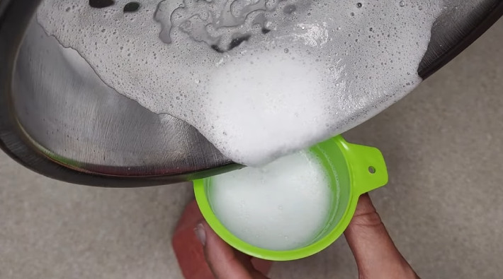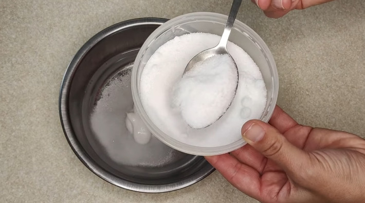 Для усилить чистящие свойства домашнего средства, добавьте в него 2 ст. л. соли. Взбейте всё венчиком до однородности.