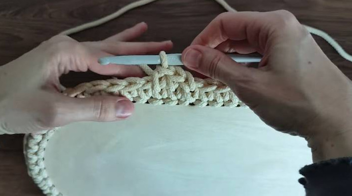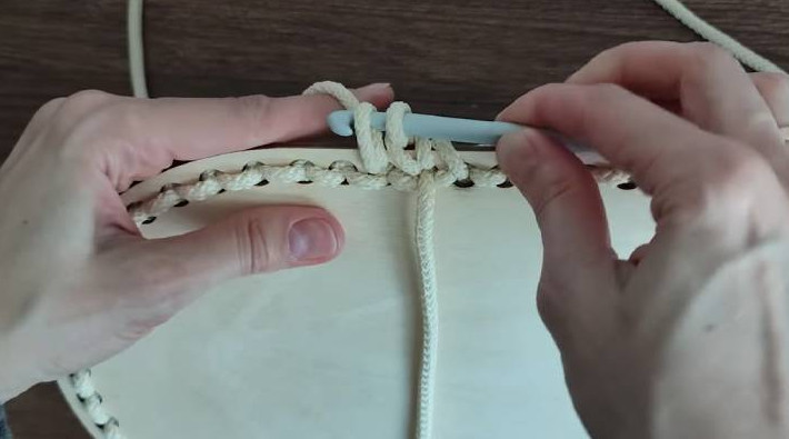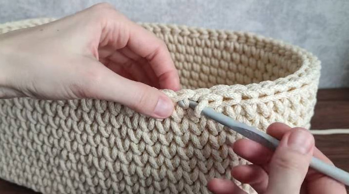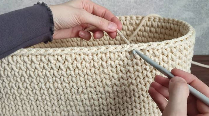 На всякой кухне пригодится эта вещица! Вяжется крючком из полиэфирного шнура — легко и играючи. Украсьте свою кухню рукотворной вещицей, сделанной с любовью! Milota Mix/youtube Что понадобится: деревянное дно 40*20 см; полиэфирный шнур 5 мм; крючок 5-7 мм; ножницы. Подготовьте деревянное дно для корзины. Его можно найти в магазине для рукоделия и на маркетплейсах. На каждой закруглённой части дна в первом ряду будем делать прибавки — по 3 шт. с каждой стороны, на равном расстоянии друг от друга. Для удобства перед вязанием нарисуйте стрелки карандашом на дне, чтобы не запутаться. Milota Mix/youtube Сначала вяжется база, потом — первый ряд. Отмерьте примерно 50 см шнура — это хвостик. Он понадобится для того, чтобы с его помощью закрывать ряды. Вытяните рабочую нить снизу вверх крючком и сделайте петлю. Milota Mix/youtube Провяжите так по всему периметру до конца. Чтобы соединить последнюю петлю, провяжите её оставленным хвостиком. Milota Mix/youtube Теперь вяжется первый ряд. Провяжите петлю сбоку. Milota Mix/youtube Продолжайте вязать обычные столбики без накида по кругу. Milota Mix/youtube Не забудьте в первом ряду сделать по прибавке в 3 местах на каждой закруглённой части. Milota Mix/youtube Второй и последующие ряды вяжутся точно так же, по петлям предыдущего ряда, но уже без прибавок. В конце каждого ряда соединяйте петли хвостиком. Milota Mix/youtube Когда свяжете достаточную высоту, спрячьте кончик пряжи в вязании. Milota Mix/youtube И укрепите последний ряд соединительными столбиками. Плюс это красивая обвязка! Milota Mix/youtube Получилась великолепная хлебница из шнура. Milota Mix/youtube
