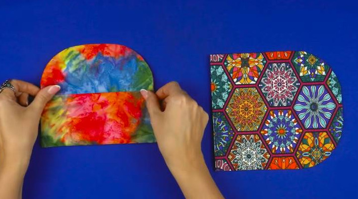 Разрежьте две половинки. Кармашек выверните вовнутрь.