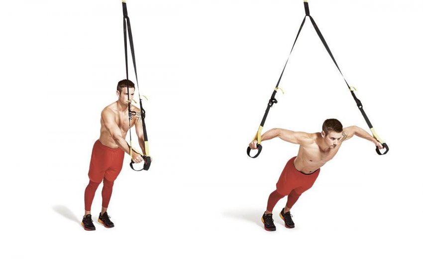 Встаньте, держась за ручки нейтральным хватом (ладони обращены внутрь), локти прижаты к корпусу. Подойдите ногами к креплению так, чтобы тело находилось под наклоном. Выпрямляя руки и готовясь к первому повторению, держите в напряжении мышцы корпуса и ягодиц. Подтяните локти близко к талии, выпятив грудь, сделайте обратное движение — это одно повторение. Ремни TRX должны оставаться натянутыми на протяжении всех повторений.