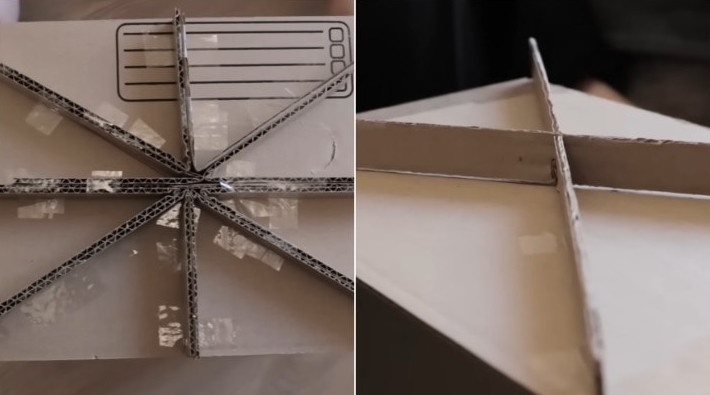 С трудом верится, что такой массивный, просторный, добротный стеллаж собран из обыкновенных картонных коробок! На него можно спокойно ставить цветы, книги и всякую мелочь. Главное — укрепить картонные стенки, чтобы они выдерживали нагрузку и ровно стояли. Великолепная идея из гофрокартона! ЭлеменДарья DIY/youtube Что понадобится: коробки из гофрокартона; скотч; ножницы; термоклей; самоклеящаяся плёнка/салфетки/обои на выбор; фетр/подложка под мебель. ЭлеменДарья DIY/youtube Процесс изготовления Схема стеллажа довольно простая. Нужно вырезать из картона достаточное количество деталей, чтобы собрать стеллаж по схеме ниже. ЭлеменДарья DIY/youtube Соберите 8 квадратов из гофрокартона. Скрепляйте картонные детали между собой на скотч или термоклей. ЭлеменДарья DIY/youtube Теперь соберите все 8 квадратов воедино. Уже похоже на стеллаж! ЭлеменДарья DIY/youtube Конечно, необходимо дополнительно укрепить стенки стеллажа, чтобы на них можно было что-то положить. Для этого нарастите толщину стенок перемычками из картона. Для горизонтальных (слева) и вертикальных (справа) стенок: ЭлеменДарья DIY/youtube С помощью термоклея закройте боковые стенки толстым картоном. Это даст дополнительную жёсткость и устойчивость конструкции. ЭлеменДарья DIY/youtube После фиксации стенок закройте открытые части тонкими полосками из того же картона. Это придаст стеллажу законченный вид. ЭлеменДарья DIY/youtube Завершающий штрих — оклейка. Здесь каждый человек подберёт что-то для себя. ЭлеменДарья DIY/youtube Чтобы стеллаж стоял на одном месте, на дно прикрепите полоски из фетра или специальные мебельные подложки. Готовый результат и правда впечатляет! Особенно если учесть, что в основе этого стеллажа — картон и горячий клей. ЭлеменДарья DIY/youtube