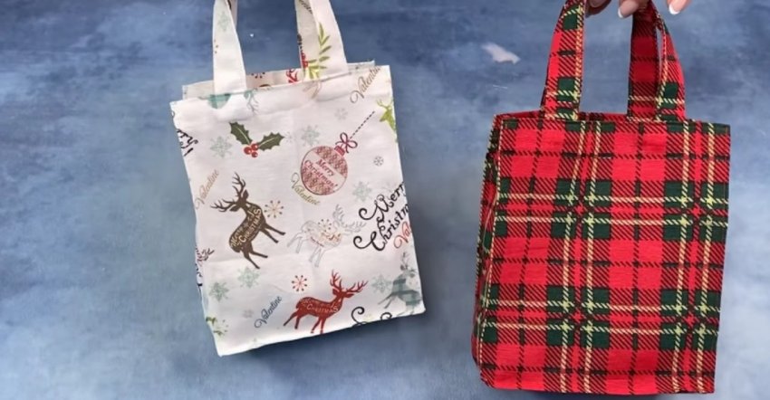 Подарочный пакетик — неотъемлемая часть новогоднего подарка. Однако не стоит покупать довольно дорогой бумажный пакетик, который, нередко начинает рваться еще до того, как он был передан в руки того, кому подарок предназначен. Вместо это сшейте очень простую тканевую сумочку, которую можно будет использовать еще долгое время даже после праздника.
