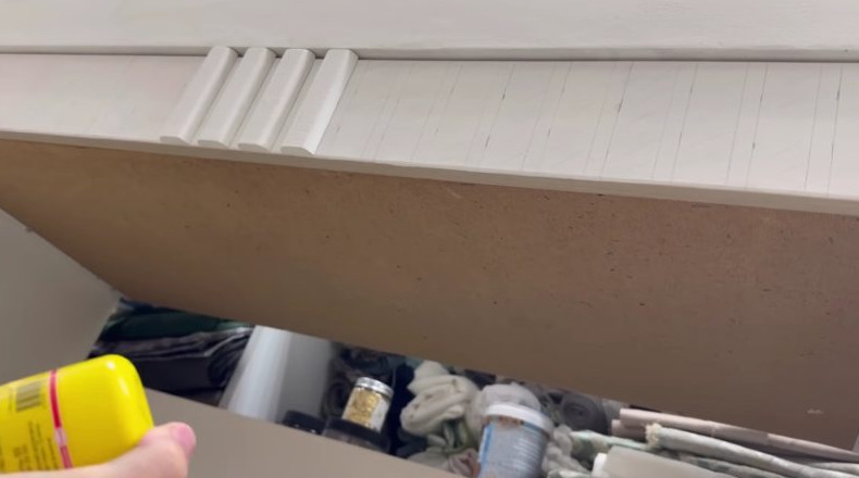 Сделайте на тумбе разметку и приклейте предварительно покрашенные рейки.