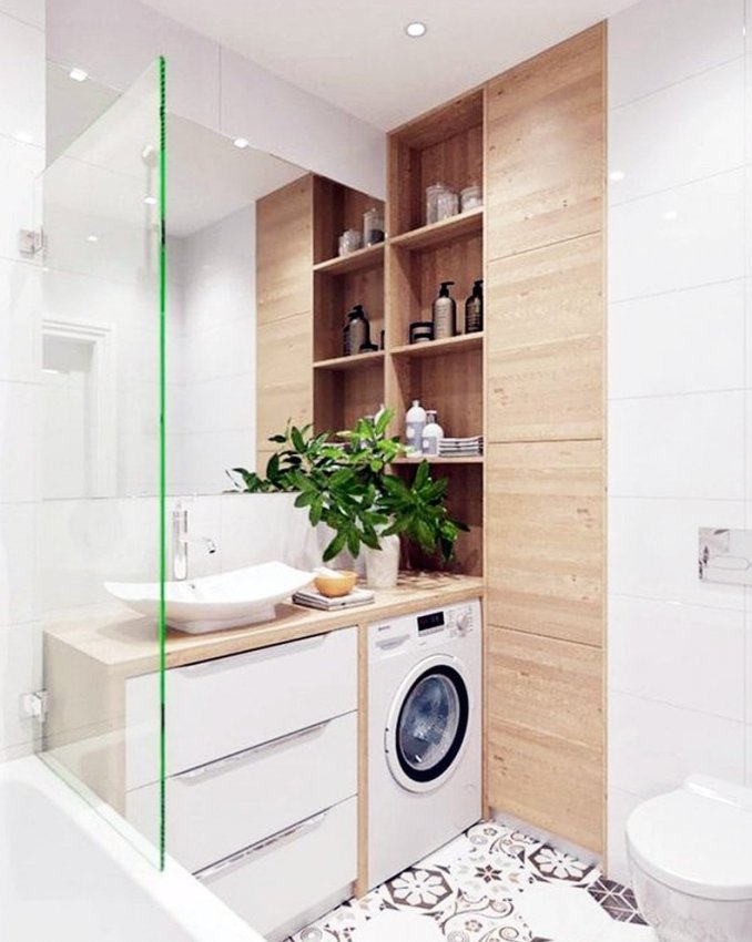 Не многие могут похвастаться наличием большой и просторной ванной комнаты, в которой поместится абсолютно все, включая стиральную машину, шкаф для полотенец, стеллаж для косметики и даже этажерка для растений. Реальность такова, что приходится придумывать, как рационально разместить все необходимое на площади порядка 4 кв.м без ущерба для собственного комфорта.