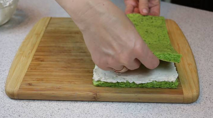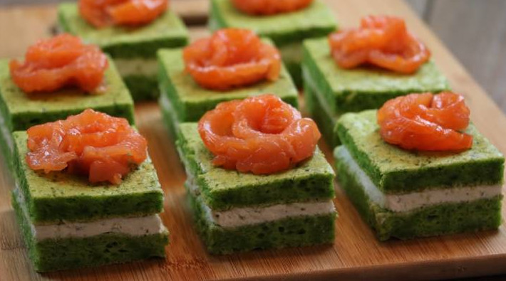 Такая закуска точно разлетится быстрее горячих пирожков! Порционные, яркие, аппетитные закусочные пирожные с красной рыбой — идеальное блюдо для украшения праздничного стола. Удивите родных и гостей потрясающей закуской! Готовим с Ириной Хлебниковой/youtube Ингредиенты: 120 г муки; 4 средних яйца; 50 г сметаны; 70 г растительного масла; 5 г разрыхлителя для теста; 0,5 ч. л. соли; 1 ч. л. сахара; 50 г шпината или зелени петрушки ; 300 г творожного сыра; 300 г красной рыбы. Читайте также - Для того, чтобы поднять настроение и зарядиться положительной энергией на целый день рекомендуется смотреть красивые картинки, поделки, про интерьер и дачный дизайн в фотографиях, про животных, насекомых, рыб, разнообразие флоры, фауны и многое другое - Картинки парней на аву посмотреть. Приготовление закусочных пирожных 1. Отделите белки от желтков. Желтки добавьте к шпинату (зелени петрушки без «хвостиков»), сюда же — сметану, растительное масло, соль. Погружным или обычным блендером измельчите до однородного состояния. Готовим с Ириной Хлебниковой/youtube 2. Отдельно взбейте белки до пиков. Добавьте в процессе взбивания сахар. 3. Муку с разрыхлителем отправьте в зелёной массе, перемешайте. Постепенно добавляйте взбитые белки, перемешивайте. Готовим с Ириной Хлебниковой/youtube 3. Выложите тесто на противень с пергаментной бумагой. Выпекайте бисквит в течение 15 минут при 180 градусах. Готовим с Ириной Хлебниковой/youtube 4. Остывший бисквит разделите на 2 равные части. Одну промажьте творожным сыром. Уложите сверху вторую половину бисквита. Готовим с Ириной Хлебниковой/youtube Сверху украсьте красной рыбкой, и всё будет готово! Можно сразу подавать к столу. Готовим с Ириной Хлебниковой/youtube Яркие, красивые, аппетитные пирожные как закуска. Такого ваши гости ещё не пробовали!