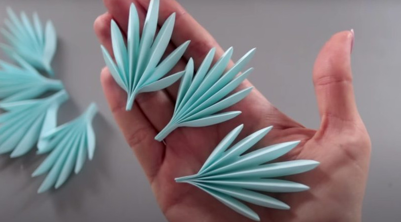 Плоские снежинки из бумаги не способны произвести такое впечатление, как объемные снежинки. Конечно, времени на изготовление объемной снежинки придется потратить немного больше, но результат, без сомнения, стоит каждой потраченной минуты. MiLena/youtube Для работы можно использовать как белую, так и цветную бумагу формата А4. Разделите лист бумаги на 3 равных части по длинной стороне. Затем сложите лист пополам. В результате лист будет разделен на 6 одинаковых частей. MiLena/youtube Разрежьте лист на части любым удобным образом. MiLena/youtube Сложите каждую полосу пополам. Каждую половину согните еще 2 раза. Аналогичные действия выполните с другой стороной. В результате прямоугольник должен быть разделен на 8 равных частей. MiLena/youtube Один фрагмент необходимо срезать. MiLena/youtube Все линии сгибов направьте вверх, а затем сложите каждый фрагмент пополам. MiLena/youtube Расправьте полученную заготовку. MiLena/youtube На сложенной пополам заготовке сделайте разметку: каждая точка должна быть ниже предыдущей на 0,7 мм. Данные точки являются вершинами снежинки. MiLena/youtube Вырежьте заготовку, ориентируясь на разметку. MiLena/youtube Склейте заготовку любым клеем для бумаги. Клей необходимо наносить в углубления с обеих сторон заготовки. MiLena/youtube Минимальное количество сегментов для изготовления снежинки — 6 штук. Однако снежинки с 7-8 сегментами будут смотреться красивее. Склейте сегменты между собой. MiLena/youtube Центр снежинки украсьте бусиной или стразом. Снежинка получается очень нарядной и праздничной. Ее можно смело использовать для оформления новогодней елки. MiLena/youtube
