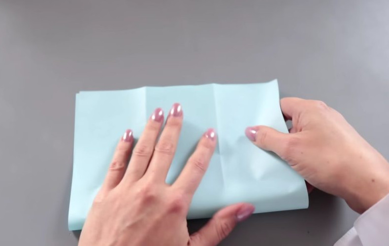 Разделите лист бумаги на 3 равных части по длинной стороне. Затем сложите лист пополам. В результате лист будет разделен на 6 одинаковых частей.