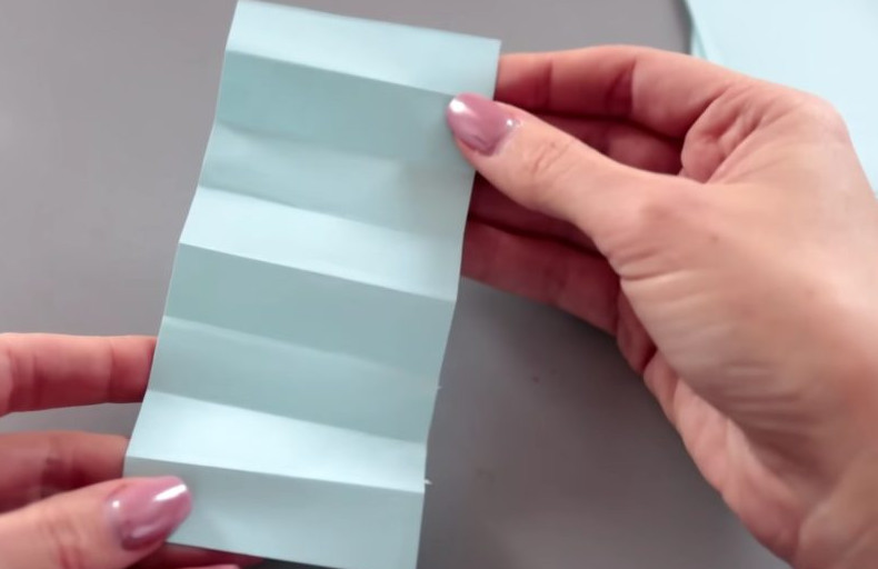 Сложите каждую полосу пополам. Каждую половину согните еще 2 раза. Аналогичные действия выполните с другой стороной. В результате прямоугольник должен быть разделен на 8 равных частей.