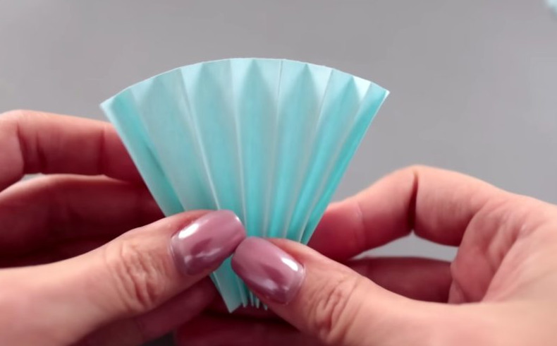 Все линии сгибов направьте вверх, а затем сложите каждый фрагмент пополам.