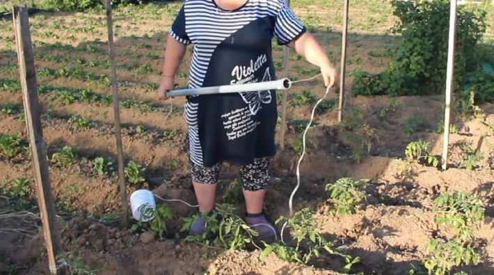 Удивительно просто, быстро, надёжно! Подвяжите помидоры без особых усилий, боли в спине и изрезанных рук. Опора получается очень крепкая — спокойно выдержит растение с плодами. Миняевы За Кадром/youtube Хитрая опора для томатов Для повторения этой идеи вам понадобится ПВХ труба, шпагат (шнур/верёвка) и колья. Вбейте колья на расстоянии 1,5-2 м на грядке с помидорами. Миняевы За Кадром/youtube Шпагат проденьте через трубу. Конец завяжите на колышке. Теперь пройдите вдоль гряди, натягивая шпагат с помощью трубы. Миняевы За Кадром/youtube Заведите трубу вокруг колья и натяните. Шпагат будет как струна! Руками этого сделать не получится. К тому же, есть высокая вероятность изрезать руки. Миняевы За Кадром/youtube Когда пройдёте всю грядку, вернитесь к началу, также оборачивая ПВХ трубой каждый кол. Получится два ряда шпагата, которые будут держать созревшие плоды. Миняевы За Кадром/youtube Конец шпагата отрежьте и завяжите. По необходимости его можно подтянуть повыше. Вот так легко и просто натянуть шпагат, как струну, для опоры томатов!