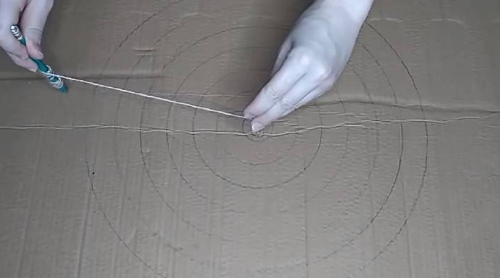 Нарисуйте на картоне круги. Отступайте одинаково по 3 см.