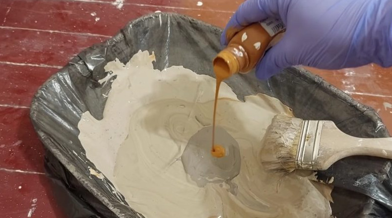 Соедините краску и колеры, чтобы получить желаемый основной цвет пола.