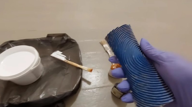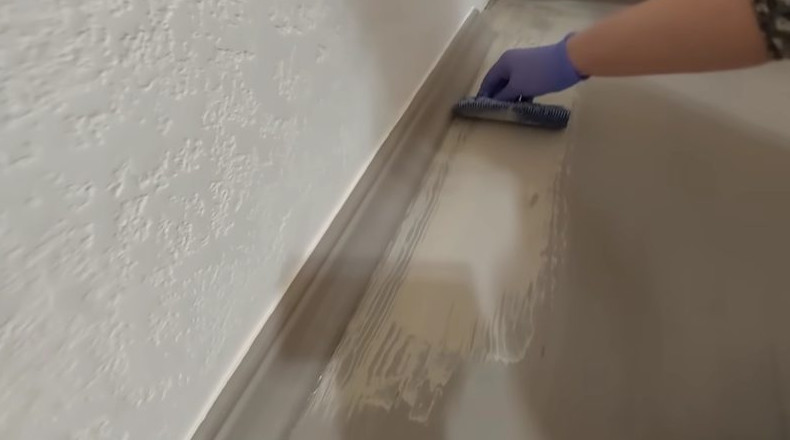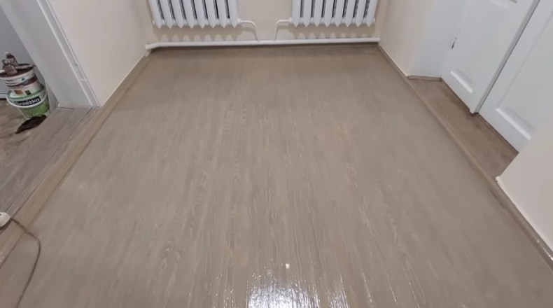 Последний этап работы — покрытие пола акриловым лаком.