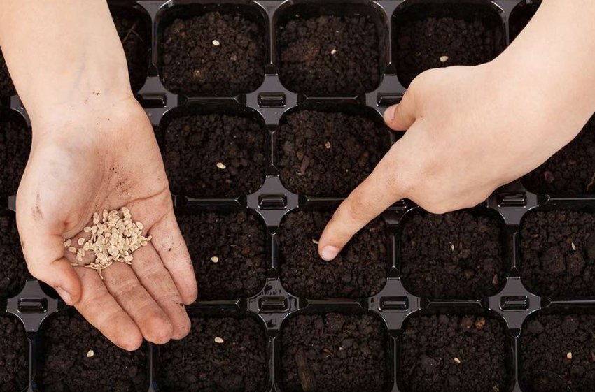 Перед посадкой семян, нужно их обработать раствором марганцовки. В тёмно-розовом растворе замочить семена на 15 минут. При чём, те, которые всплыли – слить и выбросить. Они не дадут хорошие всходы или не прорастут вообще. Высаживать семена лучше в одноразовые стаканчики – по 2-3 штучки (после прорастания – оставить самое крепкое растение). Накрыть стаканчик полиэтиленом и поместить в тёплое место, с температурой 25°С-27°С для прорастания. После появления всходов, нужно перенести стаканчики на подоконник, снять плёнку и растить рассаду. После появления второго настоящего листика, помидоры нужно пересадить в большой горшок, методом перевалки.