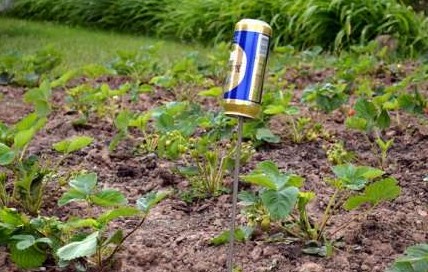 Отпугивание кротов громким звуком. Этот метод используют для того, чтобы не дать кротам облюбовать огород, отпугнуть их. Достаточно просто вкопать посреди огорода арматуру, на которую нужно надеть железную емкость. Покачиваясь на ветру, эта емкость, будет создавать звуки, которые могут отпугнуть крота. А могут и не отпугнуть – если крот будет плохо слышать или забредет на огород, когда не будет ветра, а значит, и банка не будет издавать никаких звуков.